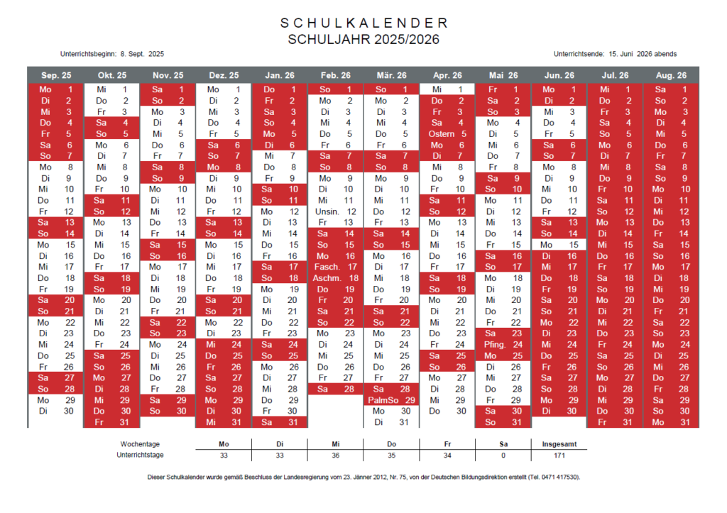 Elternsprechtage: 25. November 2025 & 26. März 2026, jeweils 9.45 – 12.45 und 13.45 – 16.45 Uhr