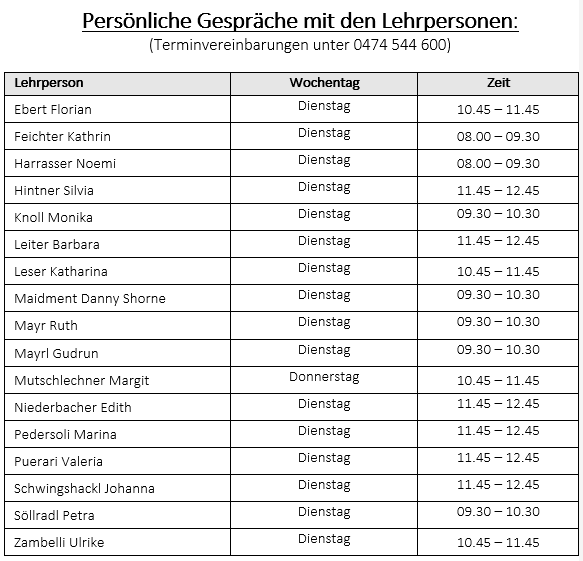 Persönliche Sprechstunden Lehrpersonen 2025-26